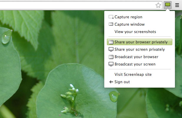 Desktop users on platforms that support the Google Chrome browser can share their screen by installing our Chrome extension. You will have the option of sharing your entire screen or just a browser tab. Like desktop screen sharing, your viewers will be able to view your shared browser window from any device with a web browser (including tablets and smartphones) without having to download or install any additional software.